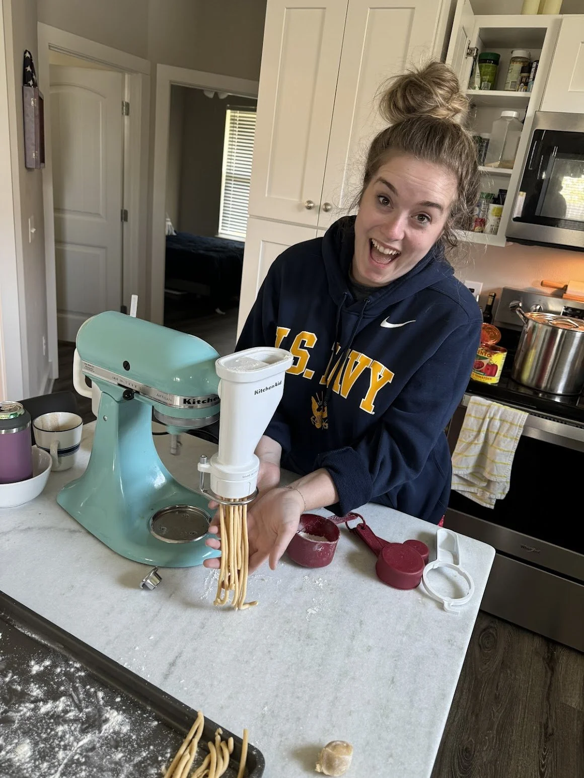In my free time, I love to knit, cook, read, go to the beach, watch movies with my husband, and play with my dog Daisy!